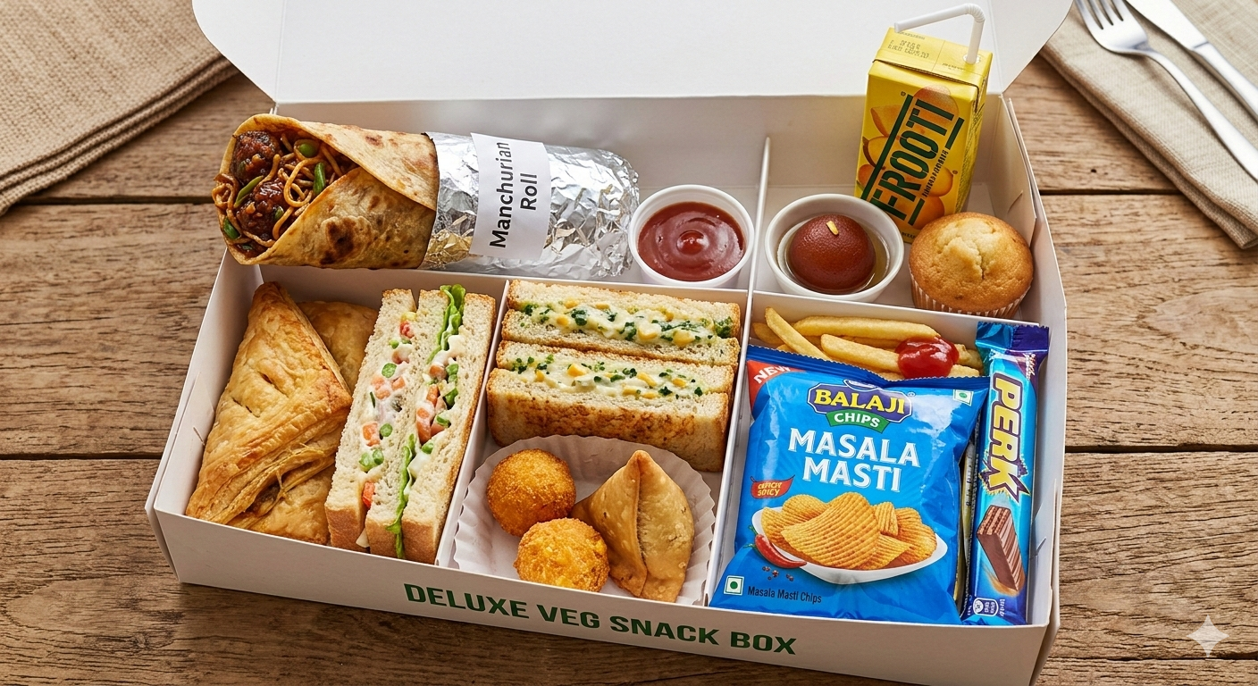 1 Samosa, 1 Veg Cutlet, 1 Packet